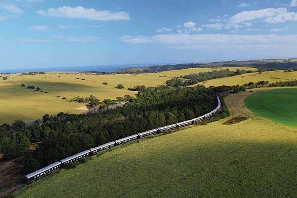 Lorsque nous montons à bord du Rovos Rail à Cape Town, quelques passagers se dirigent déjà vers le wagon d’observation, attirés par le balcon ouvert à l’arrière du train. Nous sommes un petit groupe, majoritairement des couples, tous venus pour une traversée ferroviaire de l’Afrique australe vers l’Est. Le voyage dure seize nuits et relie Cape Town à Dar es Salaam, sur plus de 5 500 kilomètres de voie. Le train quitte la ville sans annonce. Le mouvement est d’abord imperceptible, puis les quais s’éloignent. Les vignobles du Cap défilent. Très vite, chacun trouve sa place. Certains restent à l’arrière, d’autres gagnent leur suite, un verre de vin sud-africain à la main.