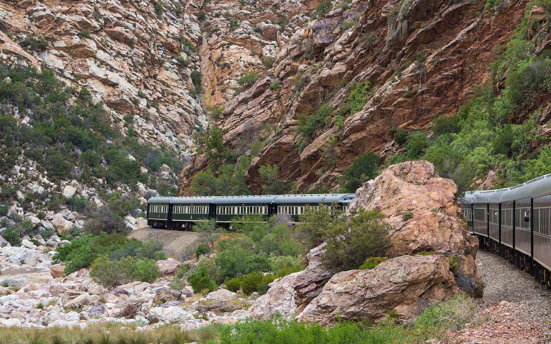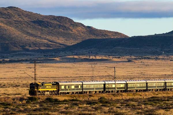 Lorsque nous montons à bord du Rovos Rail à Cape Town, quelques passagers se dirigent déjà vers le wagon d’observation, attirés par le balcon ouvert à l’arrière du train. Nous sommes un petit groupe, majoritairement des couples, tous venus pour une traversée ferroviaire de l’Afrique australe vers l’Est. Le voyage dure seize nuits et relie Cape Town à Dar es Salaam, sur plus de 5 500 kilomètres de voie. Le train quitte la ville sans annonce. Le mouvement est d’abord imperceptible, puis les quais s’éloignent. Les vignobles du Cap défilent. Très vite, chacun trouve sa place. Certains restent à l’arrière, d’autres gagnent leur suite, un verre de vin sud-africain à la main.
