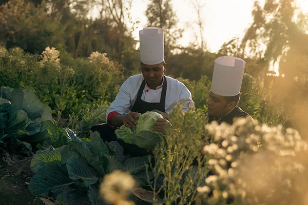 At dawn, the chef gathers herbs from the deck garden. Lunch simmers with cumin, coriander, and pomegranate. Beneath the lanterns, bread is shared, stories flow, and the table becomes a memory.