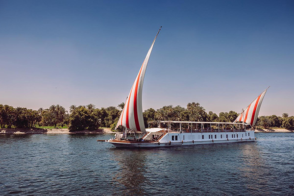 Aboard a dahabieh, the wind fills the sails and centuries glide past. You pass Esna, Edfu, Kom Ombo, quiet halts away from the crowds. The river tells its stories softly, in the rhythm of the waves.